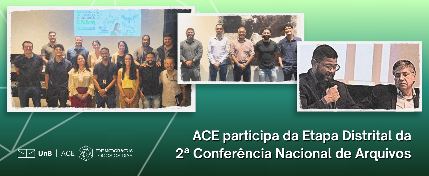 O Arquivo Central participou, nos dias 14 e 15 de abril de 2026, da Etapa Distrital da 2ª Conferência Nacional de Arquivos (CNArq), realizada no Espaço Israel Pinheiro, em Brasília. O diretor do Arquivo Central (ACE), Marcus Vinícius Gonçalves Silva, e o Coordenador de Arquivo Permanente, Vinícius de Oliveira Coêlho, integraram a delegação participante e, ao final da plenária, foram eleitos delegados do Distrito Federal, representando o ACE na etapa nacional da Conferência, que ocorrerá entre os dias 26 e 28 de maio de 2026.