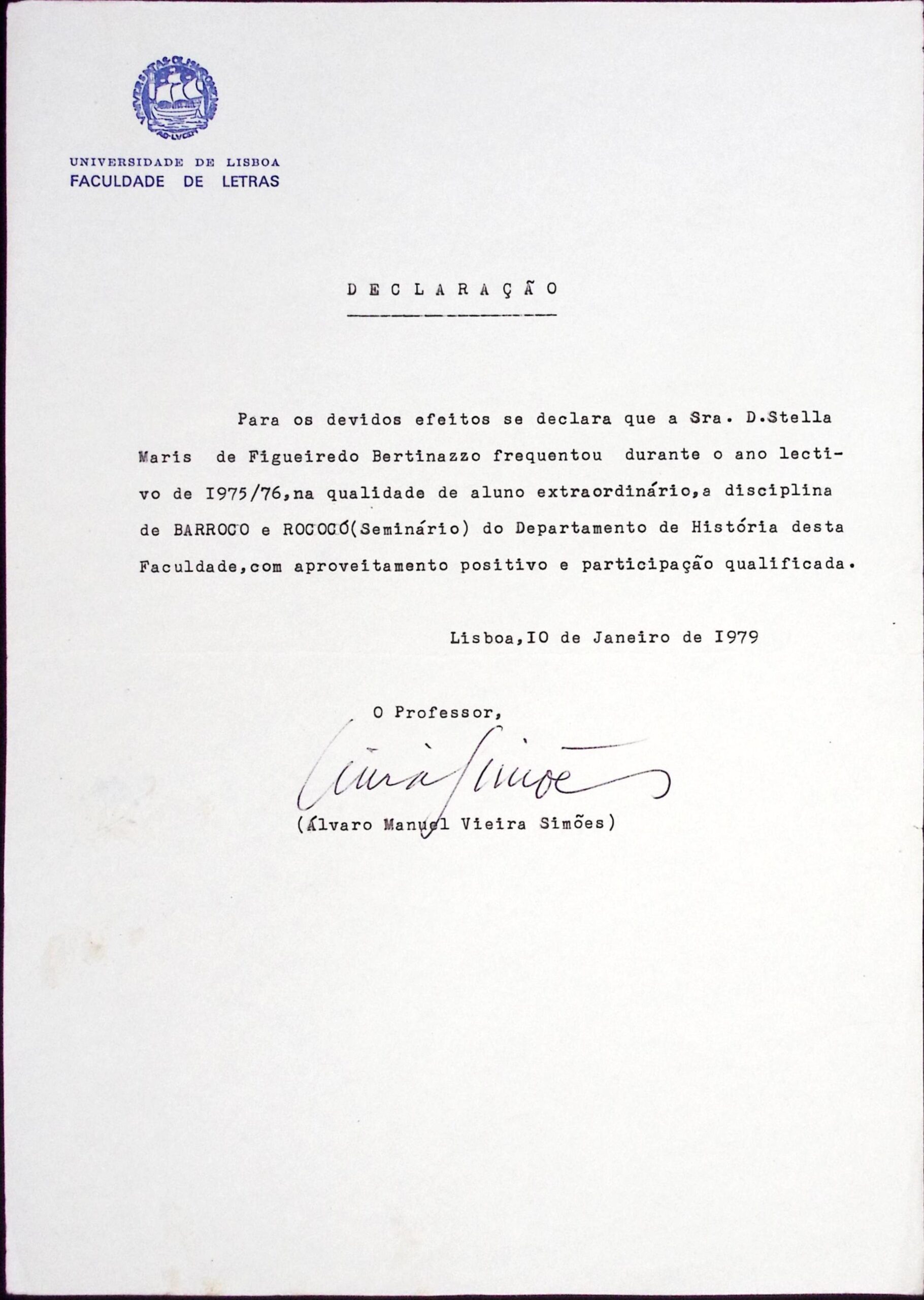Entre outubro e dezembro de 1973, realizou o Corso Medio di Lengua, Letteratura, Storia Civile e Storia Dell’Arte Italiana em Perugia, Itália. De 1973 a 1976, cursou História da Arte e História da Arte Portuguesa na Escola Superior de Arquitetura e Belas Artes de Lisboa e na Faculdade de Letras da Universidade de Lisboa, com ênfase em Fundamentos e Crítica das Artes. Em 1975, concluiu o curso de Barroco e Rococó, sendo reconhecido como Aluna Extraordinária.